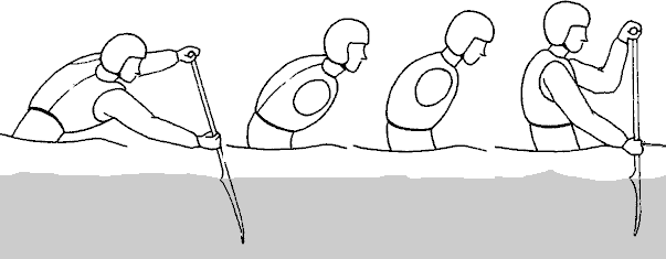 Поэтому, если вы дополните свой арсенал каноистскими приемами, вы станете практически универсальным гребцом, и вам потребуется не более 10 минут адаптации, чтобы эффективно работать (а не сплавляться) на любом туристском судне. Тогда (и только тогда!) вы сможете надстроить над своей индивидуальной техникой групповую технику экипажа. Кроме того, отдельные элементы канойных гребков входят в состав тех приемов, которые вы применяете на каяке. В частности, канойный прямой гребок можно разглядеть и в контрольном гребке, которым обычно завершается зацеп, и в усиленном гребке для прохождения бочек. Наконец, эти элементы - просто полезные упражнения, позволяющие вам лучше понять и почувствовать свое судно.
