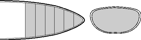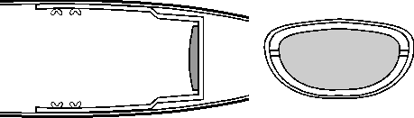 Очевидно, что корпус каяка наиболее легко деформируется в направлении дно-дека. Избежать такой деформации можно двумя способами: либо увеличивая толщину стенок корпуса (и, соответственно, их вес), либо усиливая корпус жесткими вертикальными стойками (пиллерсами) в носовой и в кормовой части.Пиллерсы