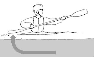- При движении весла по прямой, параллельно борту, развивается максимальное поступательное усилие и минимальный вращательный момент - именно это и требуется в данном случае. При движении весла по широкой дуге развивается минимальная тяга и максимальный крутящий момент; это будет дуговой гребок, о котором речь пойдет чуть ниже. На практике же почти любой гребок содержит элементы и прямого, и дугового. Если ваш каяк рыскает из стороны в сторону при каждом гребке, начинайте гребок с небольшой дуги от носа, чтобы остановить это вращение. По мере того, как ваша гребля станет более сбалансированной, этот дуговой элемент будет уменьшаться.