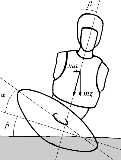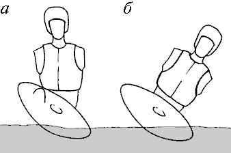 Задание крена: а — изгибанием поясницы (закантовка), б — вывешиванием корпуса (наклон). |