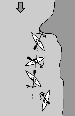 Этот маневр приходится иногда выполнять в порогах, если лодка оказывается развернута помимо вашей воли. Кроме того, это хорошее упражнение для поддержания равновесия в лодке. Вход/выход кормой вперед